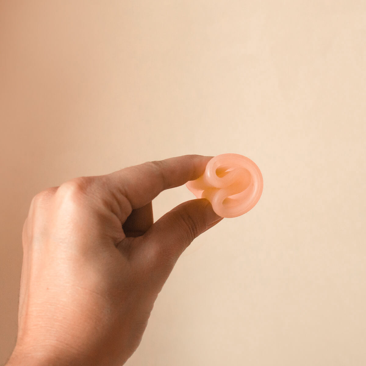 Com a base do seu coletor Korui pressionada entre os dedos, deslize o coletor gentilmente de um lado para o outro até que seja removido totalmente.